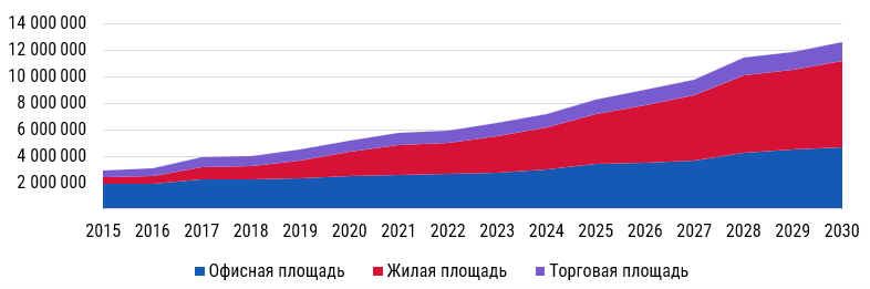 Согласно аналитическим данным Commonwealth Partnership (CMWP) площадь существующих жилых объектов, введенных с 2015 года в составе Большого Сити, составляет 4,7 млн кв. м., а площадь заявленной к вводу жилой недвижимости до 2030 г. в этом же районе составляет более 5 млн кв. м. По программам реновации комплексного развития территорий в Большом Сити будет реализовано 52% будущего жилья до 2030 года